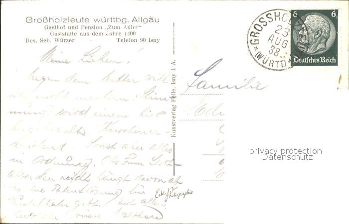 31705985 alte Postkarte Grossholzleute Eingang Gasthof zum Adler postalisch gelaufen Erhaltung siehe scans KatCode: 11110008436049