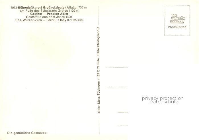 73649061 Grossholzleute Gasthof Pension Adler Historisches Gaststaette am Fusse des Schwarzen Grates postalisch nicht gelaufen Erhaltung siehe scans [FriedD77] KatCode: 11110008436049
