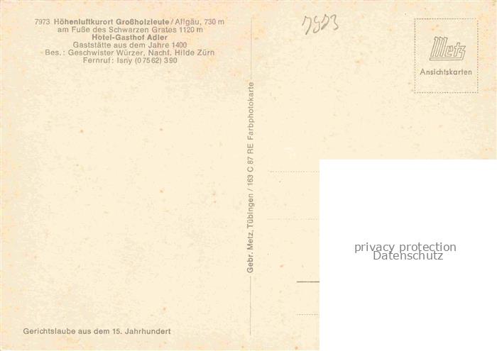 74084444 Grossholzleute Hotel Gasthof Adler postalisch nicht gelaufen Erhaltung siehe scans [WerneD78] KatCode: 11110008436049