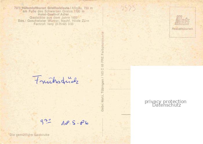 74053087 Grossholzleute Hotel Schwarzer Adler Restaurant postalisch nicht gelaufen Erhaltung siehe scans [WerneD78] KatCode: 11110008436049
