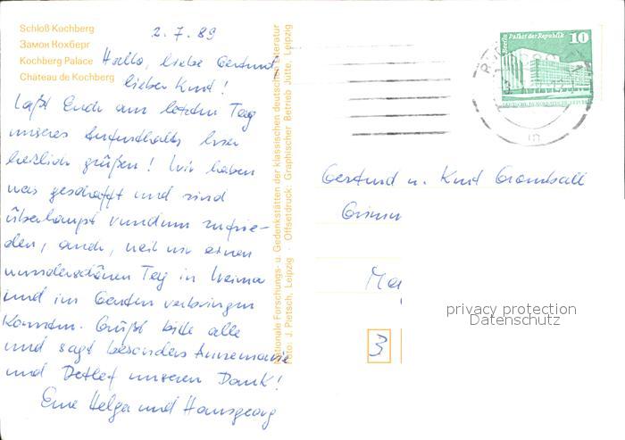 72004107 alte Postkarte Grosskochberg Schloss Kochberg postalisch gelaufen Erhaltung siehe scans KatCode: 11110016073029
