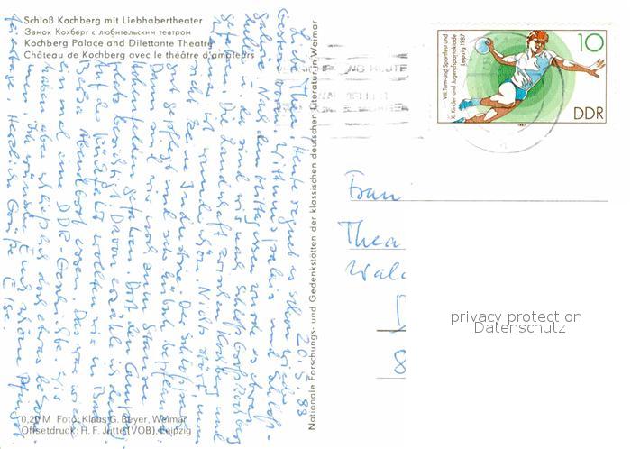 72638434 alte Postkarte Grosskochberg Schloss Kochberg Liebhabertheater postalisch gelaufen Erhaltung siehe scans [KathaD79] KatCode: 11110016073029