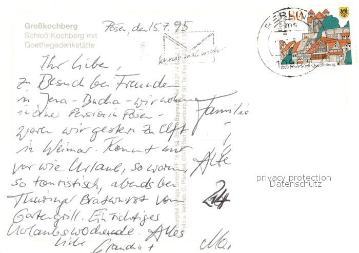 73180795 alte Postkarte Grosskochberg Schloss Kochberg mit Goethegedenkstaette postalisch gelaufen Erhaltung siehe scans [FriedD77] KatCode: 11110016073029
