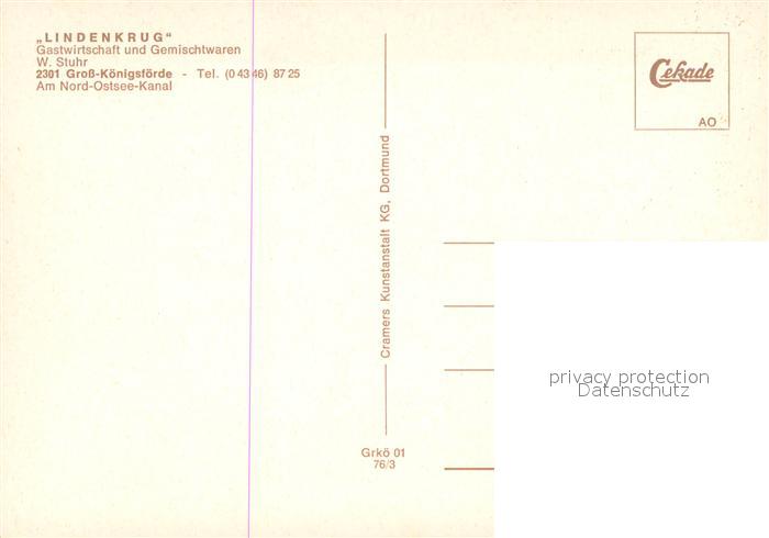 73725059 Grosskoenigsfoerde Lindenkrug Gastwirtschaft Scholer Gedenkstein Nord-Ostsee-Kanal Faehre postalisch nicht gelaufen Erhaltung siehe scans [FriedD77] KatCode: 11110001058096