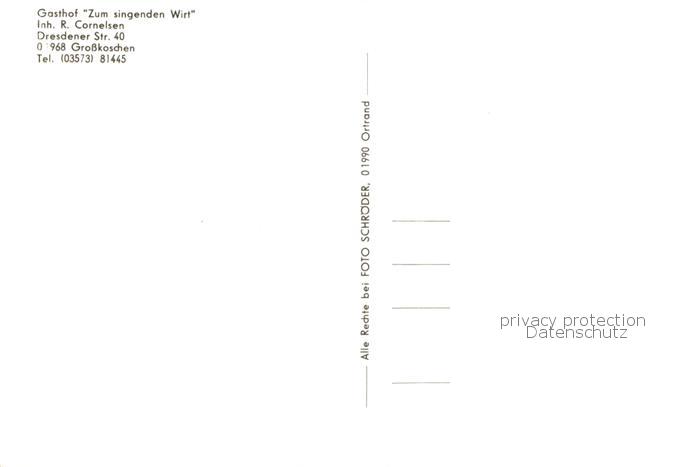 73787302 Grosskoschen Senftenberg Gasthof Zum singenden Wirt Terrasse Wappen postalisch nicht gelaufen Erhaltung siehe scans [FriedD77] KatCode: 11110012066304