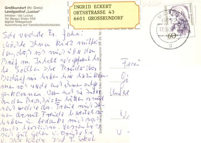 73938585 alte Postkarte Grosskundorf Landgasthof Lucius Gastraeume postalisch gelaufen Erhaltung siehe scans [WerneD78] KatCode: 11110016076075