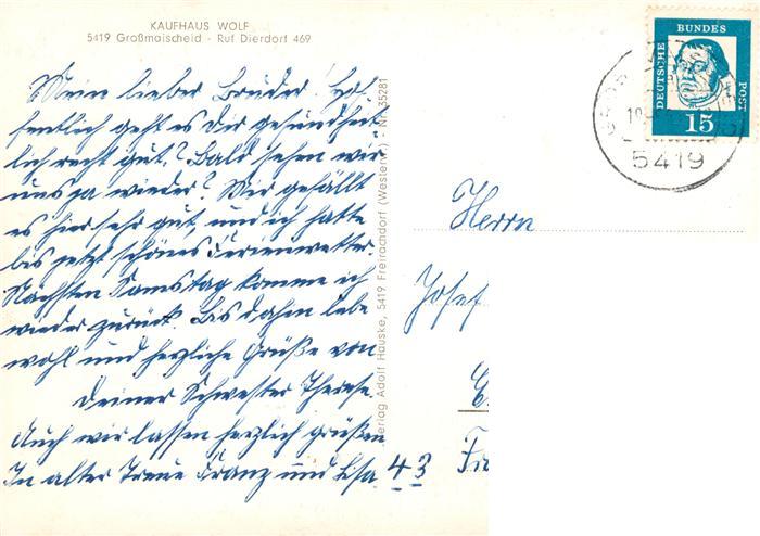 73877973 alte Postkarte Grossmaischeid Panorama Waldweg Kaufhaus Wolf postalisch gelaufen Erhaltung siehe scans [FriedD77] KatCode: 11110007138023