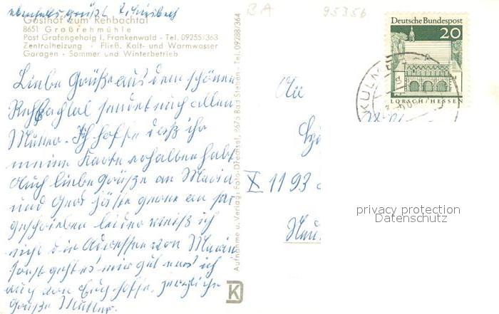 73648240 alte Postkarte Grossrehmuehle Gasthof zum Rehbachtal postalisch gelaufen Erhaltung siehe scans [WerneD78] KatCode: 11110009477138