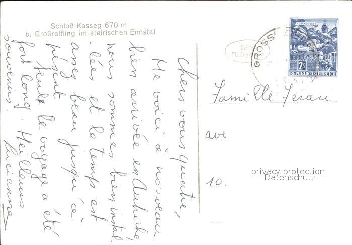 72374567 alte Postkarte Grossreifling Steiermark Schloss Kasseg postalisch gelaufen Erhaltung siehe scans KatCode: 11390222061223