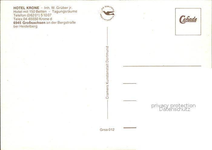 72497521 Grosssachsen Hotel Krone postalisch nicht gelaufen Erhaltung siehe scans KatCode: 11110008226107