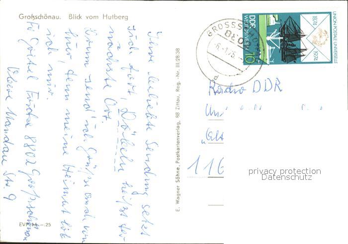 72079270 alte Postkarte Grossschoenau Sachsen Blick vom Hutberg postalisch gelaufen Erhaltung siehe scans KatCode: 11110014286120