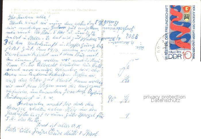 72332118 alte Postkarte Grossschoenau Sachsen Panorama Blick vom Hutberg Waldstrandbad Pestalozzischule Museum postalisch gelaufen Erhaltung siehe scans KatCode: 11110014286120