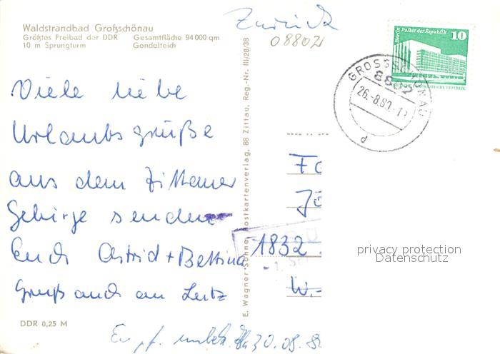 72937414 alte Postkarte Grossschoenau Sachsen Waldstrandbad postalisch gelaufen Erhaltung siehe scans [FriedD77] KatCode: 11110014286120