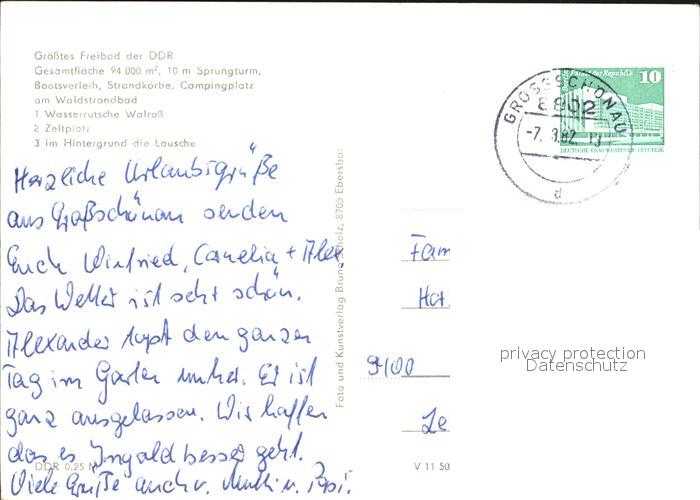 72549017 alte Postkarte Grossschoenau Sachsen Waldstrandbad postalisch gelaufen Erhaltung siehe scans [LiesaD40 kv021box] KatCode: 11110014286120
