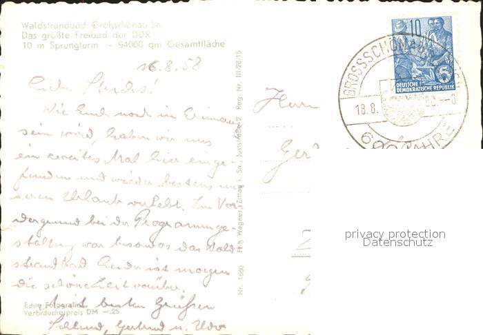 72357175 alte Postkarte Grossschoenau Sachsen Waldstrandbad postalisch gelaufen Erhaltung siehe scans KatCode: 11110014286120