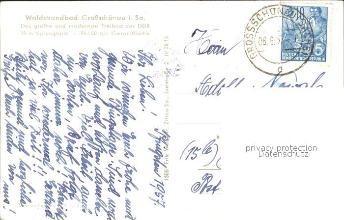 72280876 alte Postkarte Grossschoenau Sachsen Waldstrandbad postalisch gelaufen Erhaltung siehe scans KatCode: 11110014286120