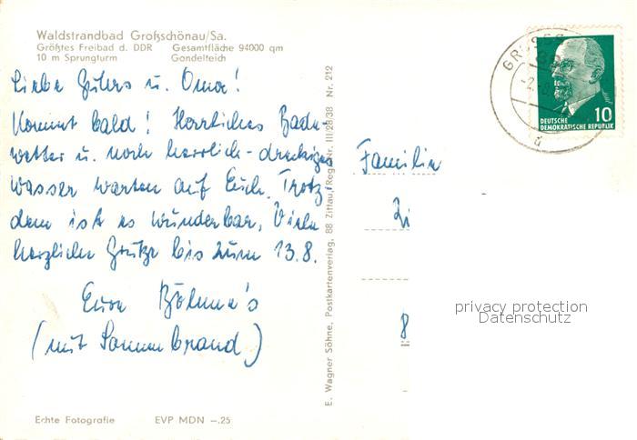 73132884 alte Postkarte Grossschoenau Sachsen Waldstrandbad postalisch gelaufen Erhaltung siehe scans [FriedD77] KatCode: 11110014286120