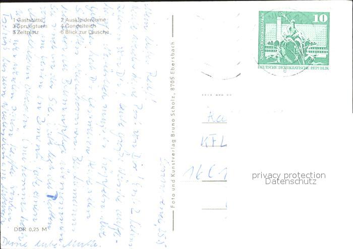 72474657 alte Postkarte Grossschoenau Sachsen Waldstrandbad Sprungturm Zeltplatz Gondelteich postalisch gelaufen Erhaltung siehe scans KatCode: 11110014286120