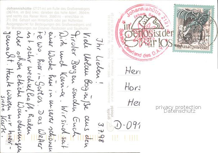 72262053 alte Postkarte Grossvenediger mit Johannishuette postalisch gelaufen Erhaltung siehe scans KatCode: 11390