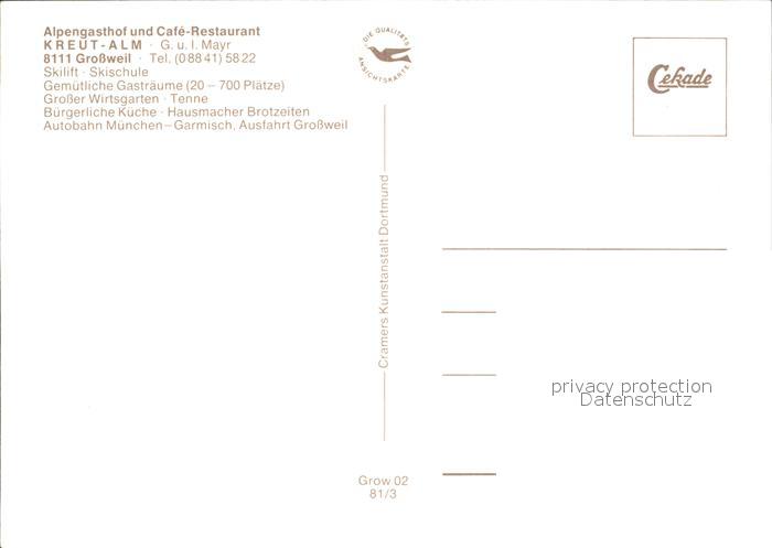72287647 Grossweil Alpengasthof Cafe Kreut-Alm postalisch nicht gelaufen Erhaltung siehe scans KatCode: 11110009180119