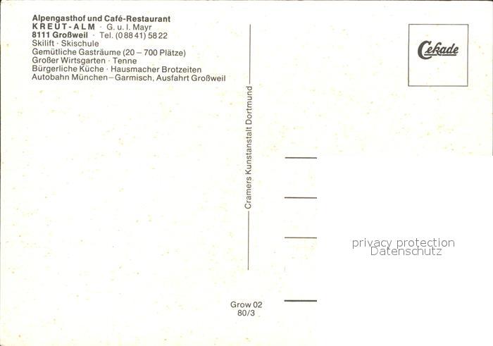 72334084 Grossweil Alpengasthof Cafe Restaurant Kreut Alm postalisch nicht gelaufen Erhaltung siehe scans KatCode: 11110009180119