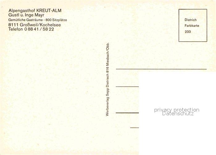 72907471 Grossweil Alpengasthof Kreut Alm postalisch nicht gelaufen Erhaltung siehe scans [AndreD76] KatCode: 11110009180119