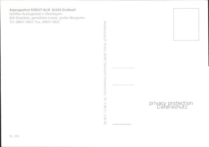 71986255 Grossweil Alpengasthof Kreuz Alm postalisch nicht gelaufen Erhaltung siehe scans KatCode: 11110009180119