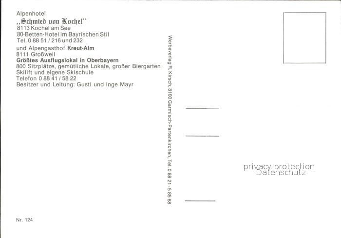 72287648 Grossweil Alpenhotel Schmied Kochel postalisch nicht gelaufen Erhaltung siehe scans KatCode: 11110009180119