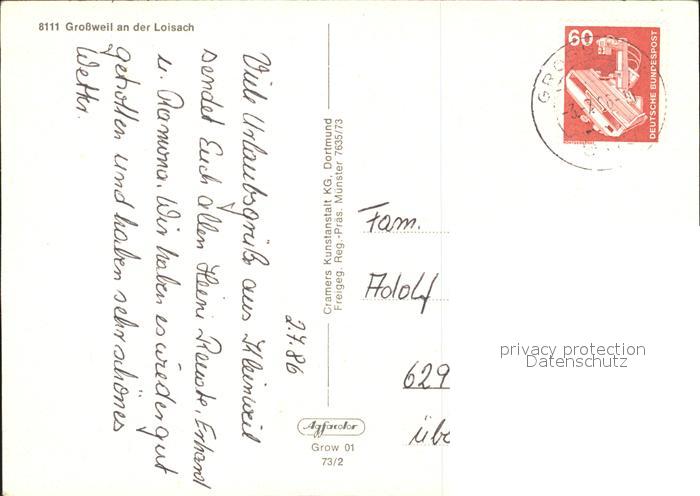 71905440 alte Postkarte Grossweil Fliegeraufnahme mit Loisach postalisch gelaufen Erhaltung siehe scans KatCode: 11110009180119