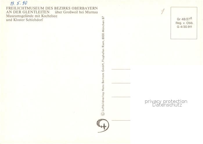 73162877 Grossweil Freilichtmuseum an der Glentleiten Kochelsee Kloster Schlehdorf Alpen Fliegeraufnahme postalisch nicht gelaufen Erhaltung siehe scans [FriedD77] KatCode: 11110009180119