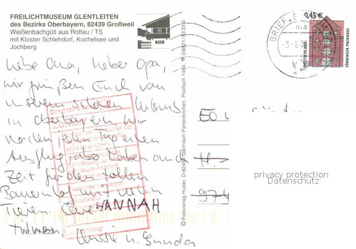 72782844 alte Postkarte Grossweil Freilichtmuseum Gentleiten mit Kloster Schlehdorf Jochberg und Kochelsee postalisch gelaufen Erhaltung siehe scans [WerneD78] KatCode: 11110009180119