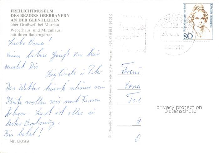 72030253 alte Postkarte Grossweil Freilichtmuseum Glentleiten des Bezirks Oberbayern Weberhaeusl postalisch gelaufen KatCode: 11110009180119