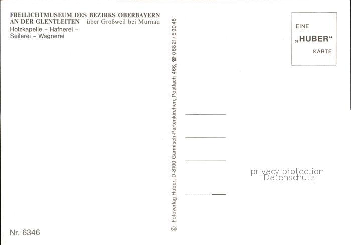72261723 Grossweil Freilichtmuseum Holzkapelle Hafnerei Seilerei Wagnerei Huber Karte N 6346 postalisch nicht gelaufen Erhaltung siehe scans KatCode: 11110009180119