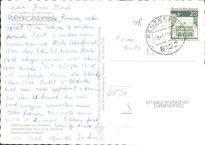 71994462 alte Postkarte Grossweil Schlehdorf Kochelsee Jochberg Karwendelgebirge Walchenseekraftwerk postalisch gelaufen Erhaltung siehe scans KatCode: 11110009180119