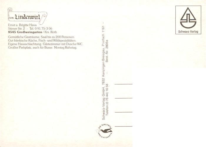 73881679 Grossweingarten Gasthaus Zum Lindenwirt postalisch nicht gelaufen Erhaltung siehe scans [WerneD78] KatCode: 11110009576147