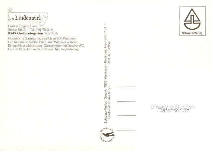 73863037 Grossweingarten Hotel Restaurant zum Lindenwirt postalisch nicht gelaufen Erhaltung siehe scans [FriedD77] KatCode: 11110009576147