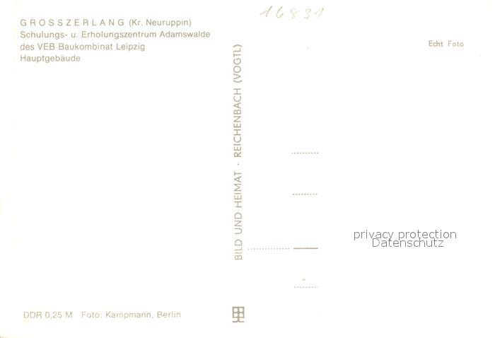 73210281 Grosszerlang Schulungs und Erholungszentrum Adamswalde VEB Baukombinat Leipzig postalisch nicht gelaufen Erhaltung siehe scans [FriedD77] KatCode: 11110012068353