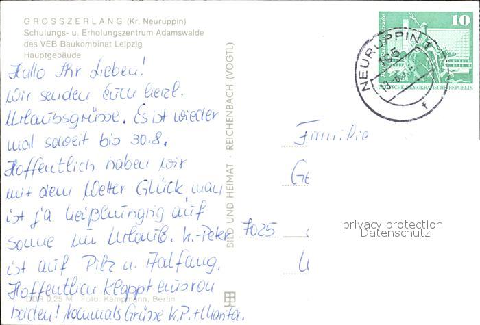 72056273 alte Postkarte Grosszerlang Schulungszentrum Adamswalde VEB Leipzig Hauptgebaeude postalisch gelaufen Erhaltung siehe scans KatCode: 11110012068353