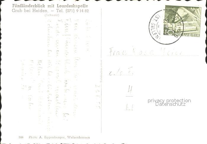 11640710 alte Postkarte Grub SG Heiden Fuenflaenderblick Lourdeskapelle Schafe postalisch gelaufen Erhaltung siehe scans KatCode: 11470190575740