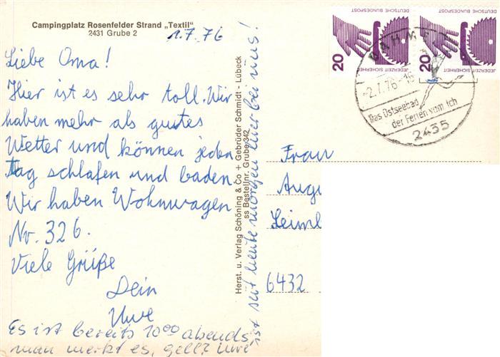 73897062 alte Postkarte Grube Holstein Rosenfelder Strand Campingplatz postalisch gelaufen Erhaltung siehe scans [FriedD77] KatCode: 11110001055018