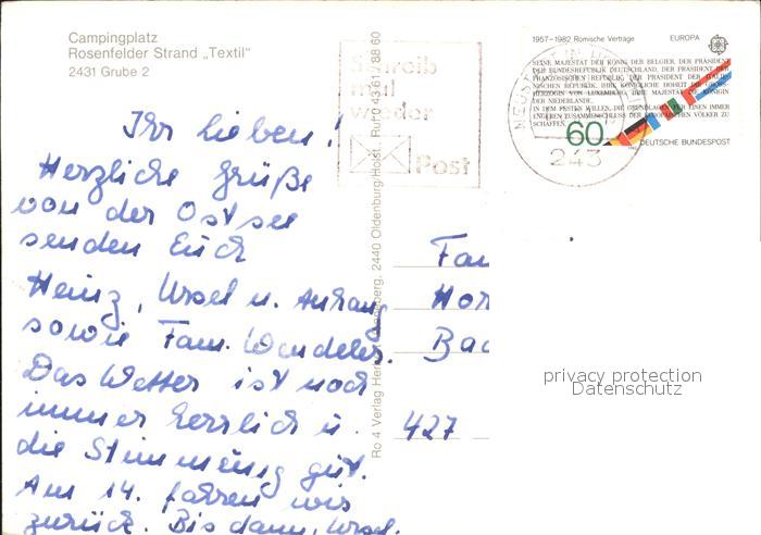 71947441 alte Postkarte Grube Holstein Rosenfelder Strand Ostsee Camping postalisch gelaufen Erhaltung siehe scans KatCode: 11110001055018