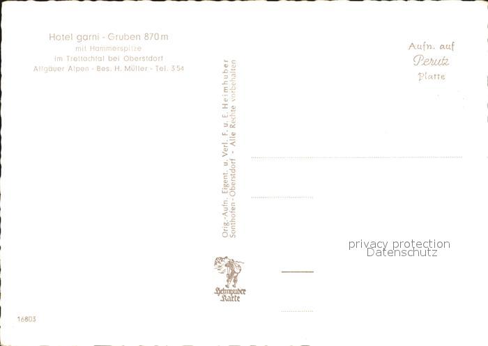 72468401 Gruben Oberstdorf Hotel Garni Hammerspitze Trettachtal postalisch nicht gelaufen Erhaltung siehe scans KatCode: 11110009780133