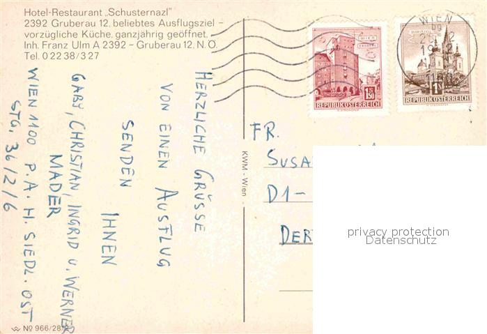 12636460 alte Postkarte Gruberau Hotel Restaurant Schusternazl postalisch gelaufen Erhaltung siehe scans [LiesaD40] KatCode: 11390