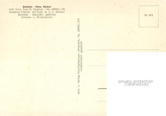 73717400 Gruen St Englmar Panorama Gasthof Pension Reiner Gaststube postalisch nicht gelaufen Erhaltung siehe scans [WerneD78] KatCode: 11110009278184