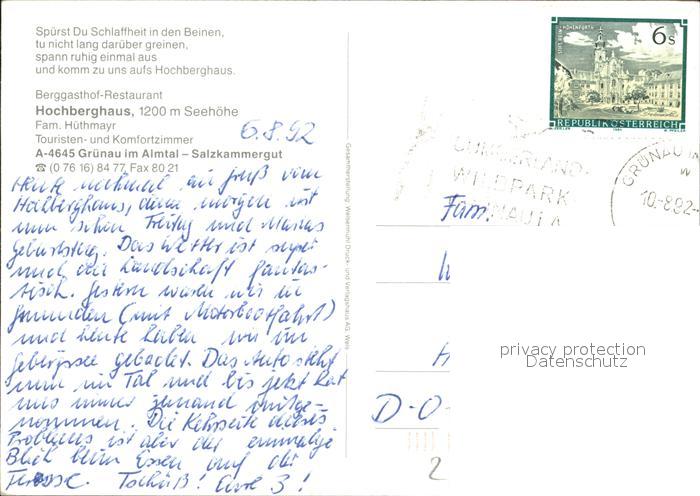 72496360 alte Postkarte Gruenau Almtal Berggasthof Hochberghaus Ofenplatzl Panorama Almsee postalisch gelaufen Erhaltung siehe scans KatCode: 11390315040707