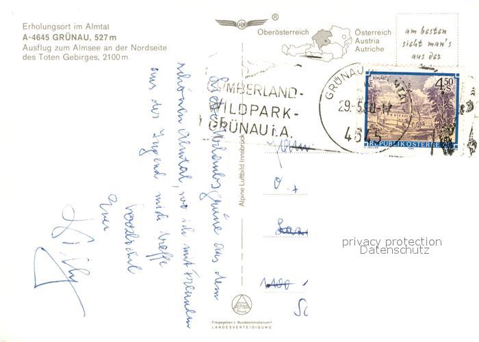 73355315 alte Postkarte Gruenau Almtal Fliegeraufnahme postalisch gelaufen Erhaltung siehe scans [WerneD78] KatCode: 11390315040707