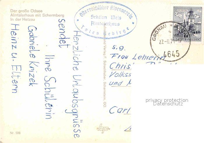 72624676 alte Postkarte Gruenau Almtal Grosser oedsee Almtalerhaus mit Schermberg In der Hetzau postalisch gelaufen Erhaltung siehe scans [WerneD78] KatCode: 11390315040707