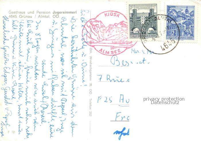 74042433 alte Postkarte Gruenau Almtal Oberoesterreich AT Gasthaus Pension Jagersimmerl postalisch gelaufen Erhaltung siehe scans [WerneD78] KatCode: 11390315040707