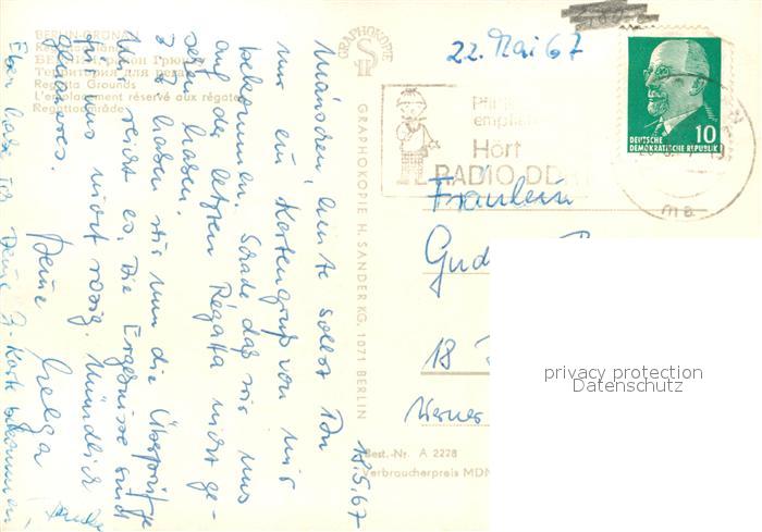 73100902 alte Postkarte Gruenau Berlin Regattagelaende postalisch gelaufen Erhaltung siehe scans [KathaD81] KatCode: 11110011000000