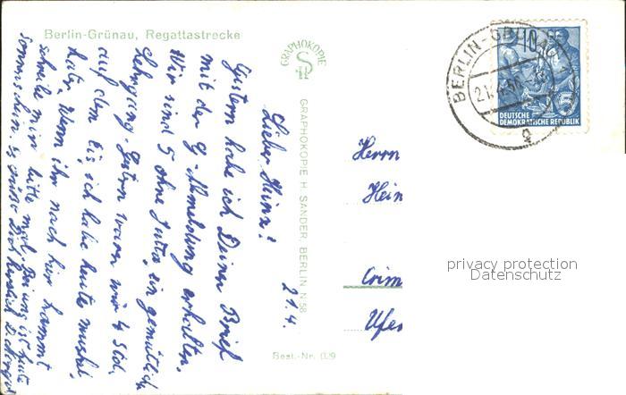71983711 alte Postkarte Gruenau Berlin Regattastrecke postalisch gelaufen Erhaltung siehe scans KatCode: 11110011000000